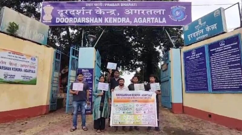 দাবী আদায়ে দূরদর্শন কেন্দ্র আগরতলার সামনে ধর্না প্রদর্শন করলেন প্রসার ভারতীর একাংশ কর্মচারীরা