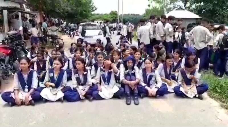 শিক্ষিকা বদলির প্রতিবাদে প্রমোদনগর হায়ার সেকেন্ডারি স্কুলের ছাত্রছাত্রীদের সড়ক অবরোধ
