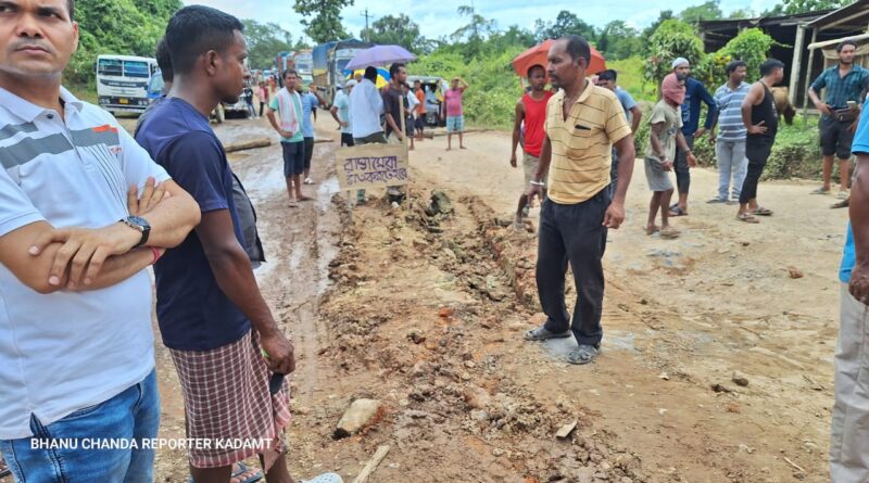 জাতীয় সড়ক সংস্কারের দাবীতে ভোটের মুখে আবারো অনির্দিষ্টকালের জন্য অবরোধ খেরেংজুড়িতে