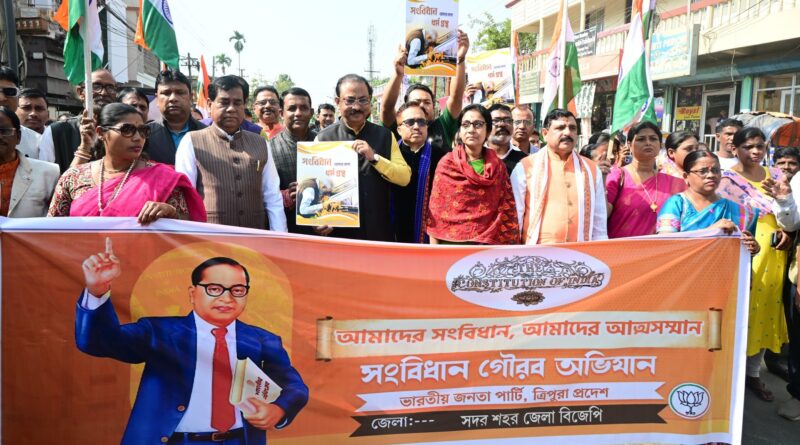 দেশের সংবিধান কার্যকরীর ৭৫ বছর পূর্তি উপলক্ষে ১১ থেকে ২৫ জানুয়ারি সারা দেশে সংবিধান গৌরব অভিযান কর্মসূচি নিয়েছে ভারতীয় জনতা পার্টি। এই কর্মসূচির অঙ্গ হিসেবে শুক্রবার সারা দেশের সাথে রাজ্যের দশটি সাংগঠনিক জেলায় সংবিধান গৌরব অভিযান উপলক্ষে রেলি করা হয়। বিজেপির সদর (শহর) জেলা কমিটির উদ্যোগে রাজধানীতে আয়োজন করা হয় এই রেলির। এর নেতৃত্ব দেন প্রদেশ বিজেপি সভাপতি তথা রাজ্যসভার সাংসদ রাজীব ভট্টাচার্য। উপস্থিত ছিলেন আগরতলা পুর নিগমের মেয়র তথা বিধায়ক দীপক মজুমদার, প্রদেশ বিজেপির সহ-সভাপতি পাপিয়া দত্ত সহ বিজেপির অন্যান্য নেতৃবৃন্দ।