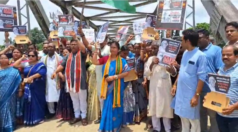 বাংলাদেশে কবিগুরুর পৈত্রিক বাড়িতে হামলার প্রতিবাদে রাগনা সীমান্তে বিজেপির বিক্ষোভ