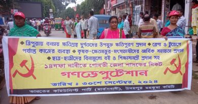 বালির ‘ভাইটাল’ না পেয়ে বিশালগড়ে বন দফতরের অফিসের সামনে চালক ও শ্রমিকদের ধর্না